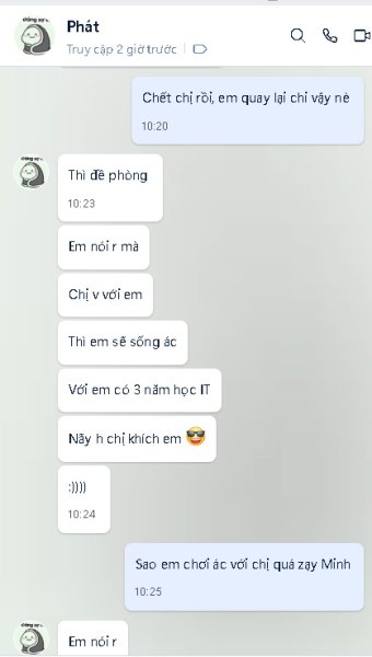 Thú thật chị không thích mấy cái trò chát rồi quay video lại nhưng thằng này nó khốn nạn với chị quá nên chị thế thiên hành đạo dạy cho nó bài học ,nó bất nhân thì chị bất nghĩa .Còn xanh và non lắm ,khôn vặt khôn vãnh mà cứ tưởng mình khôn hơn thiên hạ 🙂 🙂 🙂 🙂