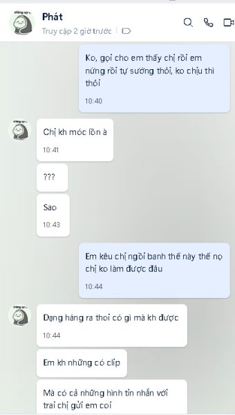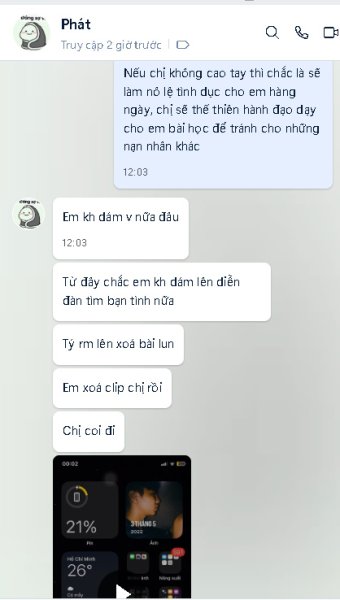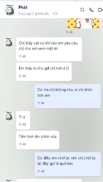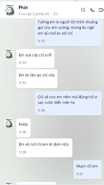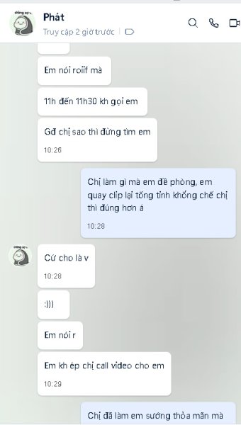 Tình hình là cách đây vài ngày trong diễn đàn này có nick tên Phone vào làm quen rồi cho số qua Zalo nói chuyện call Video với chị