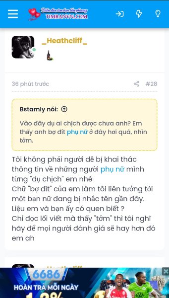 Em ấy nói là người lạ nhưng lại rep còm tôi bằng những ngôn từ "dụ chịch", "nhìn tởm", "bợ đít" nên tôi mới tò mò. Mà không phải người quen thì tôi cũng không muốn gây khó dễ cho nhau làm gì. Vì nhận nhầm em ấy là em kia nên tôi mới xin lỗi em ấy thôi gã ah