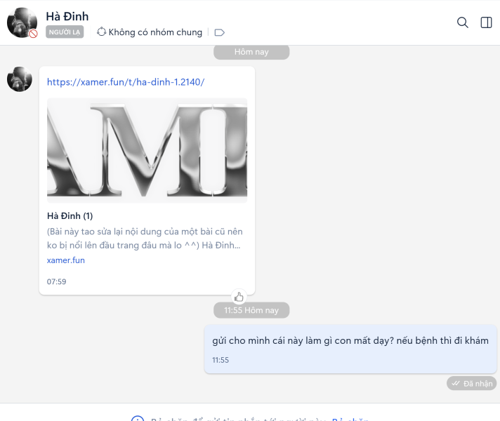 Sáng nay mới nhận tin nhắn của 1 con điên