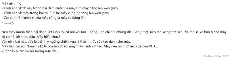(Nó lại tưởng là nắm ít thông tin của người ta là đe dọa được. Mà nó quên là người ta làm truyền thông, người ta thích công khai danh tính, nhưng nó bị ảo tưởng)
