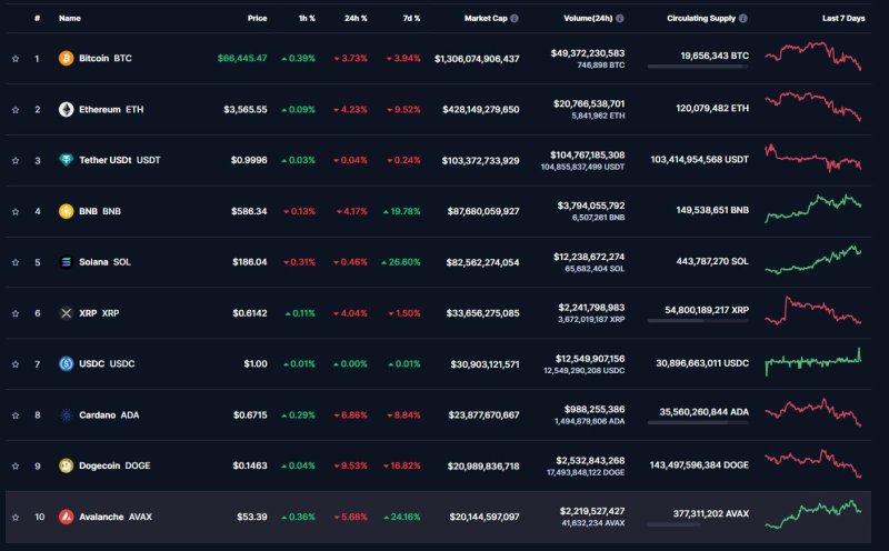 Top 10 đồng coi có giá trị vốn hóa lớn nhất thị trường crypto theo Coin Market Cap