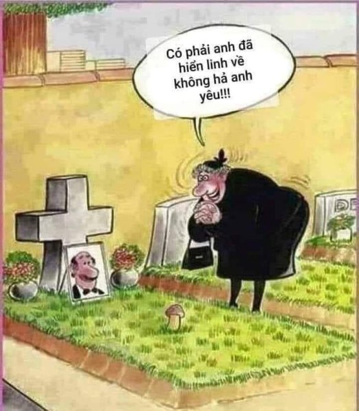 - Ô hay, cái hôm 49 ngày em có đốt cho anh cả mấy chục xấp tiền đó, anh xài hết rồi sao ?